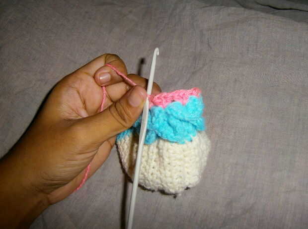 Ahora para la siguiente capa hacer la puntada de la V y la puntada cocodrilo.