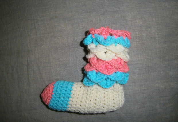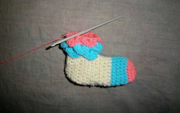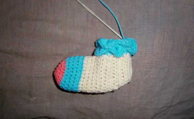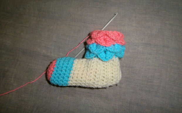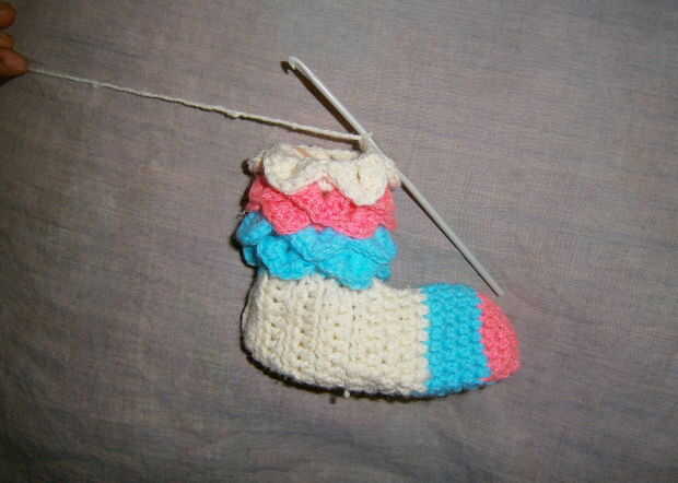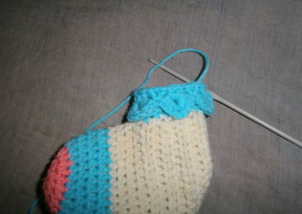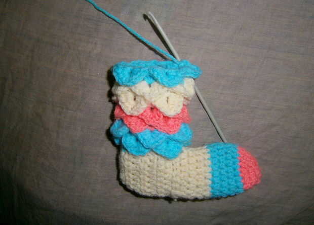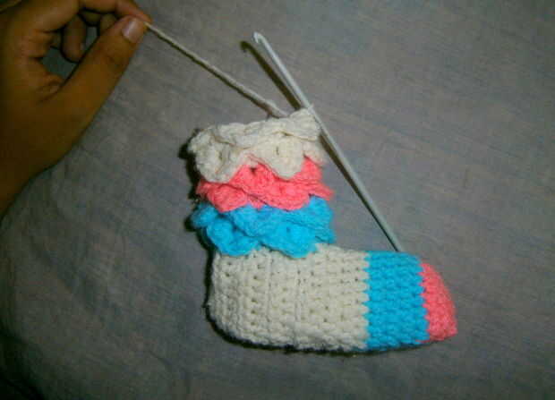 Así de esta manera he cumplido 8 capas para el calentador de la pierna que fue de suficiente longitud de mi sobrina. Si usted quiere más usted puede seguir añadiendo más.