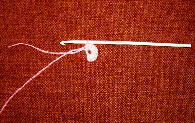 Ronda 1 - cadena de 2, 6 hdc en primera cadena.