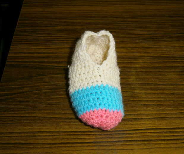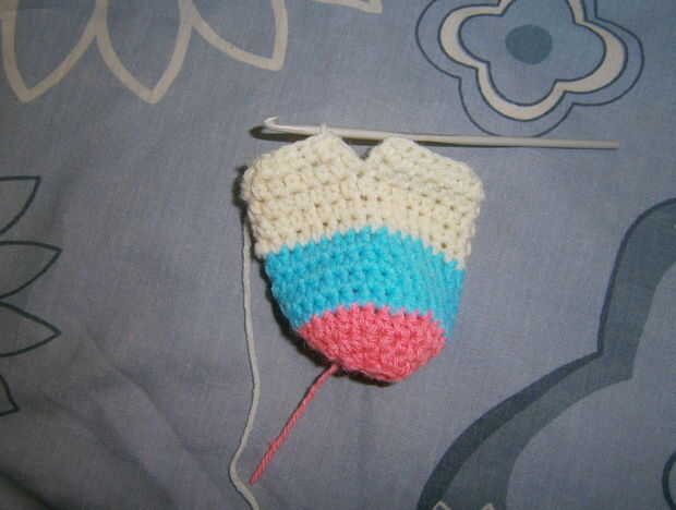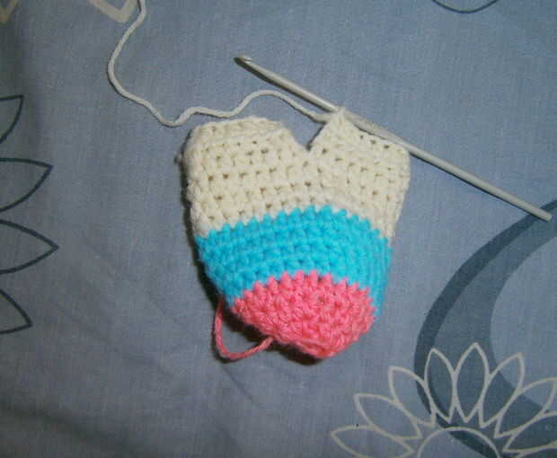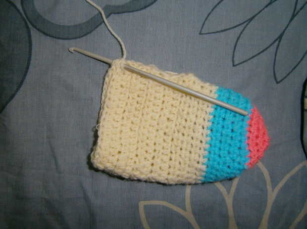 Aquí a partir del punto medio de la parte superior de su botín. Ir en dirección izquierda a derecha. Trabajo 1 hdc en cada puntada. Al llegar al final de la fila no no p.de cadeneta.