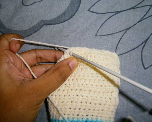 La vuelta. Cadena 1 continuar 1 hdc en cada puntada.