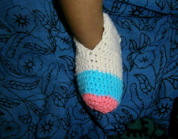 Ahora fije el extremo abierto en puntada de resbalón. Invierta los botines.