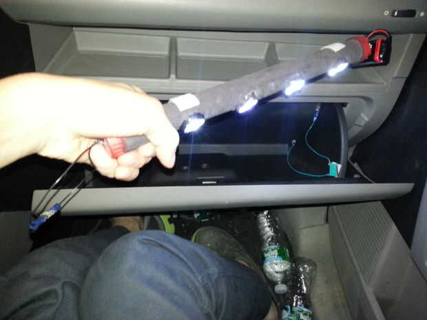 Aquí está una pequeña luz de guantera portátil alimentado por batería. Puede colocar en el interior de la caja de guante con Velcro u otra marca gancho y lazo, así al abrir la guantera, el interruptor de la puerta se enciende la luz, y al cerrar la g