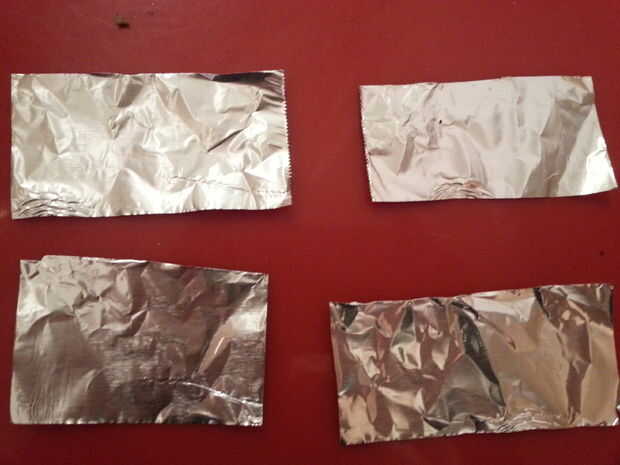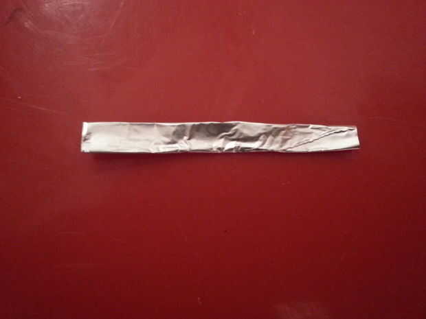 nos va poniendo papel de aluminio alrededor de la pieza entera 9led para conectar todos los negativos y ajustar con cinta