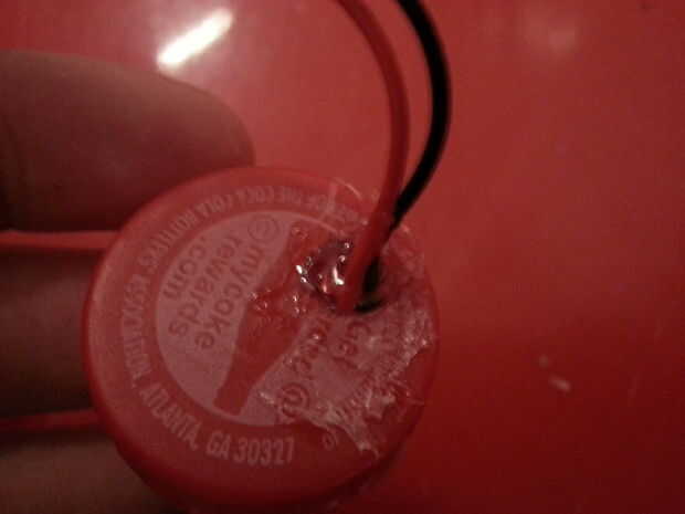 5. empuje a través de la tapa (con el agujero de centro) y pegamento caliente que la tapa no la tapa al tubo