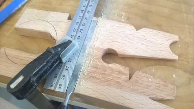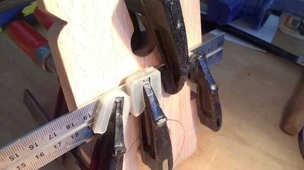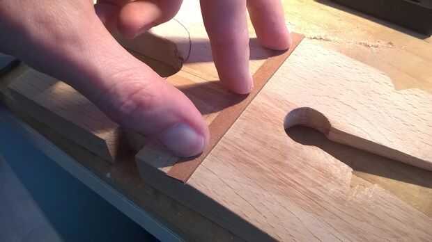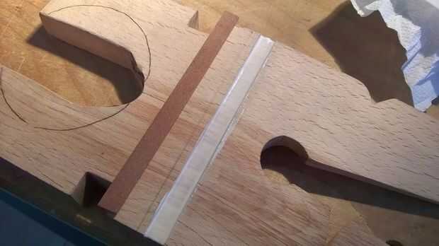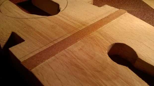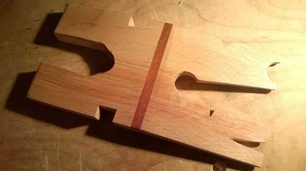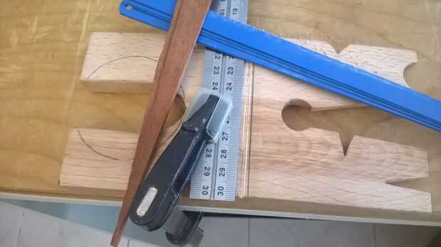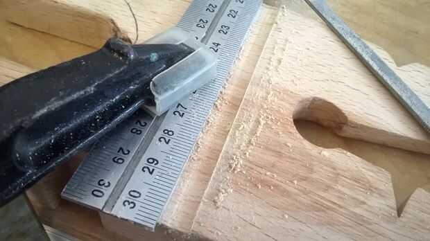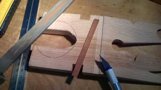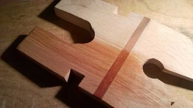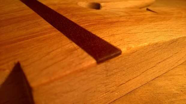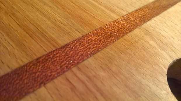 Fijar la regla metálica como guía y utiliza múltiples metalsawblades llevado a cabo para hacer un surco. Pagar una multa con archivo y equipada tira de la incrustación. Después de encolar lija a plana, pulido y añade un toque de aceite citrone. Yo sé, es sólo una herramienta... pero ¿por qué no?