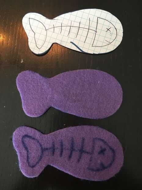 Empecé haciendo una plantilla que podría cortar y utilizar como patrón. Entonces, en un lado del pescado que dibujé el contorno de los huesos de pescado.