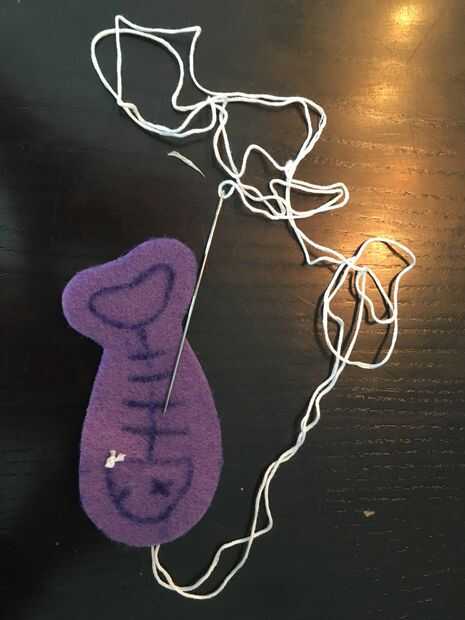 este juguete de gato es realmente fácil de hacer y si ya tienes todo lo también es gratuito.Lo que usted necesita:Restos de fieltroAgujaHilo de roscaRellenoHierba gateraTijeras* Patrón de ratónTrazar el patrón sobre el fieltro y un trozo largo y fino