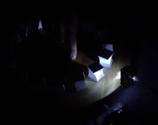 Ahora sólo necesitas subir el código a tu Arduino, enchúfela a una fuente de energía, coloque y fije el interruptor de láminas bajo los imanes de (, averiguar si el interruptor de láminas reacciona a cada imán), apagar las luces y gire la placa con la mano!