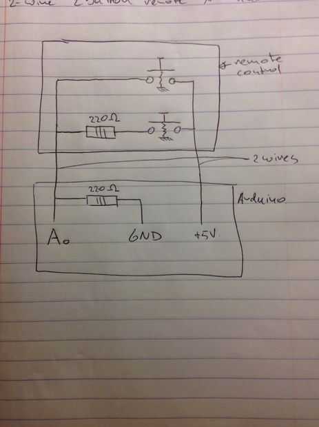 En la resistencia de 1 220 Ohmios control remoto después de uno de los 2 botones (ver dibujo).
