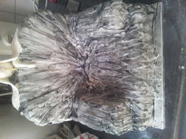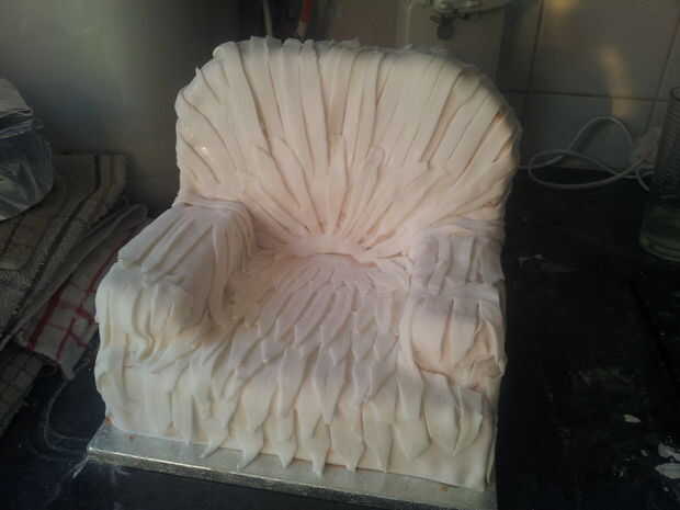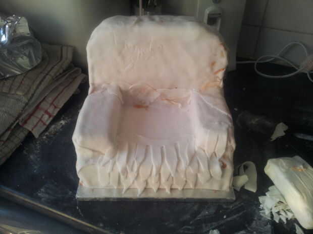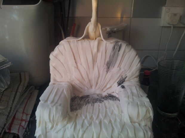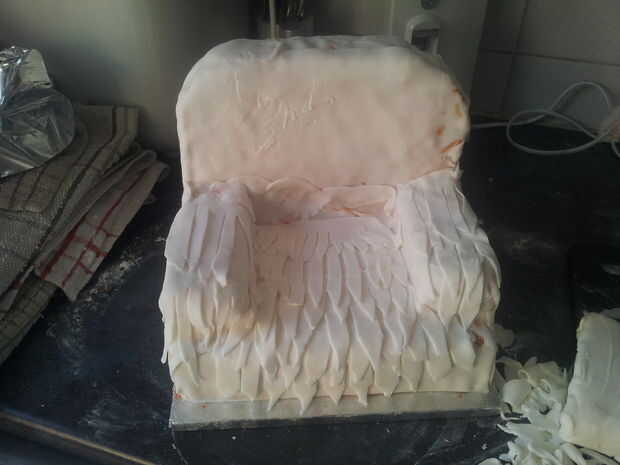 Así que pensé sabía mejor y pintado el tinte directamente en la formación de hielo!!!!!! Pero en mi defensa he querido pintar gestos de espadas en los lados y la parte posterior de la torta para ahorrar tiempo.