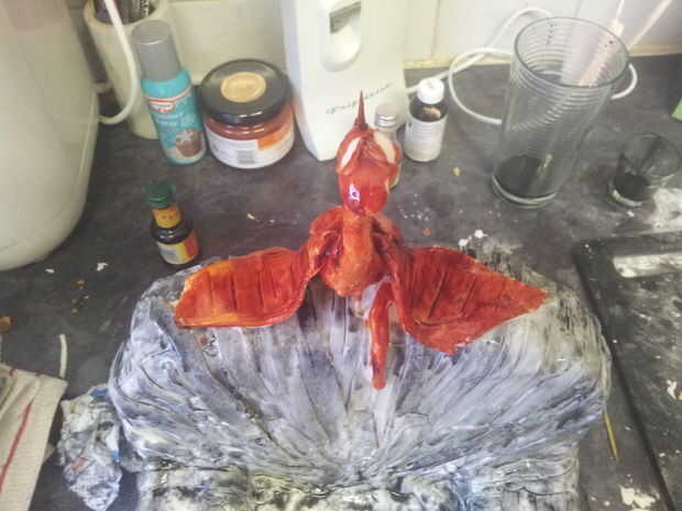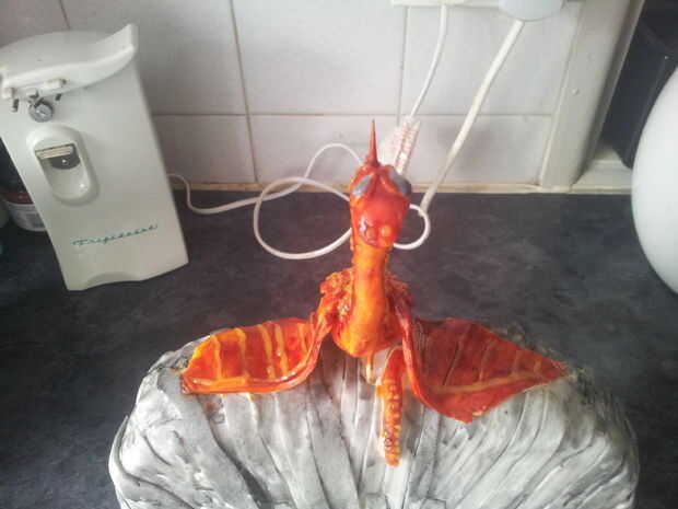 A continuación hice un pequeño dragón a sentarse en la parte superior, alrededor de unos pinchos de kebab con cierta izquierda sobre glasé (mantequilla hace un soporte perfecto para esta tarea jeje)