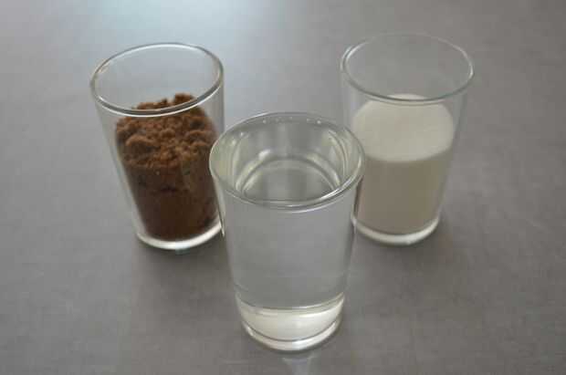 -Hervir 200 ml de agua con blanco 100ml y 100ml azúcar morena durante aproximadamente 1 minuto (medida en volúmenes)