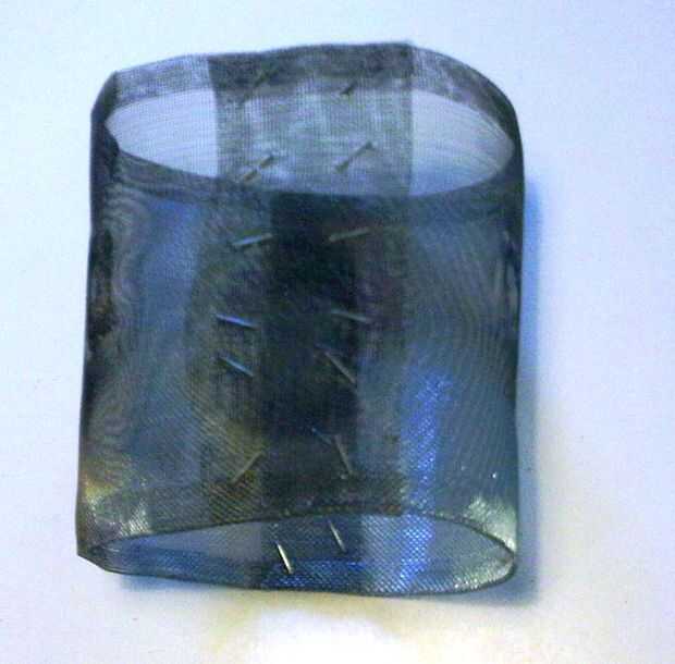 Como lo hizo en un paso anterior, revelan parte de un lado del material y meter el otro lado en que dobla, hasta su marca. La malla debe estar ahora en una forma del cilindro del tamaño adecuado.