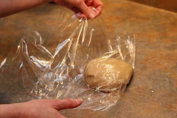 Envuelva la bola de masa en papel plástico. Este paso no es necesario, pero se recomienda! Los sellos de plástico más aire y humedad por lo que permanecerá fresco durante un largo periodo de tiempo.