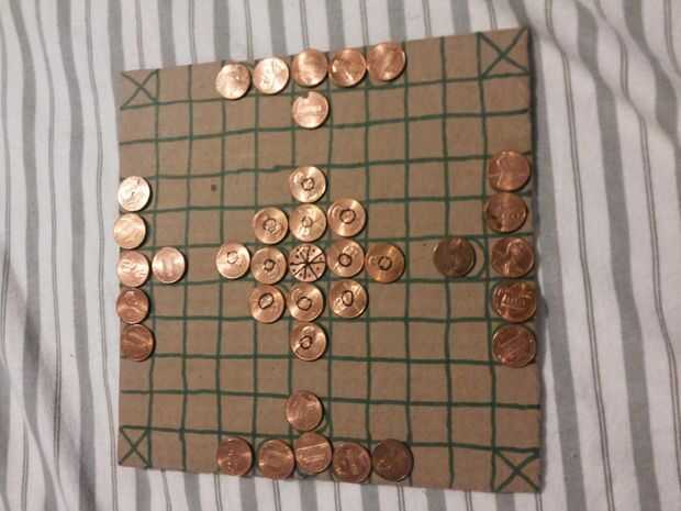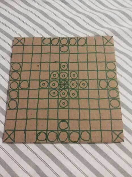 Este juego es un juego viejo viking. Su realidad mayores de ajedrez y las reglas son muy simples. Me dio la idea para esto esta maravilloso ible ( Explica las reglas y la construcción de un hermoso tablero madera de Hnefatafl. Dibujar una cuadrícula de 11 × 11 a un lado de la cartulina. Dibuja una X en cada casilla de la esquina. También he añadido marcadores para me recuerdan a las posiciones de salida, pero esto es opcional.
