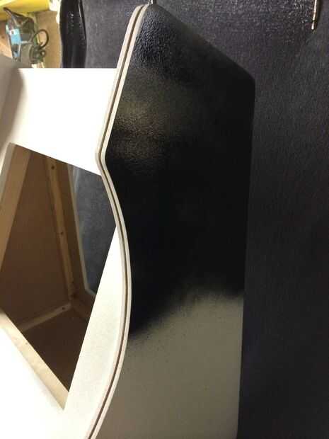 Siguiente fue el acabado negro que se logró con unas cuantas capas de pintura en aerosol. Vale la pena tener una lectura para aprender a aplicar correctamente la pintura de aerosol. En Resumen, sostenga unos 20cm de distancia, mantener la puede mover y tratar de hacer un montón de capas finas en lugar de capas generosas. También es importante usar una máscara de buena calidad, y trabajar en algún lugar bien ventilado.