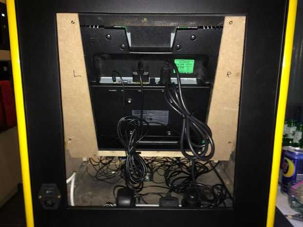 El siguiente paso es cortar el extremo de enchufe de un cable barato y alambre en la parte posterior del interruptor de encendido/apagado. Esto es donde tiene un cable que prensa conjunto realmente viene en práctico. Si no lo tienes es hora de salir el soldador. Hay un montón de guías en línea si no eres un pro en el cableado. La extensión necesita suficientes tomas de corriente para alimentar el monitor, el Pi, la iluminación y los altavoces (opcionales).