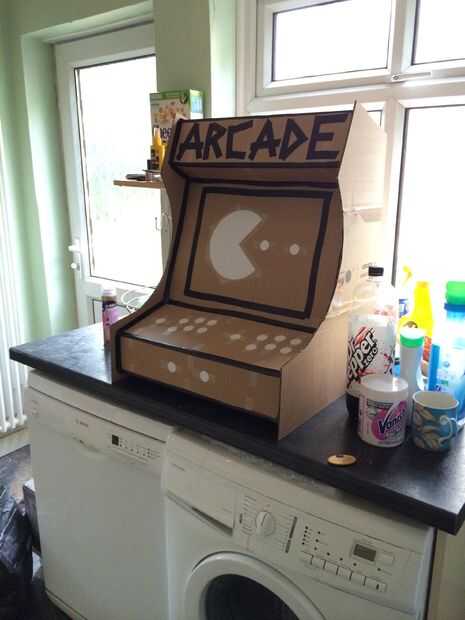 Usando algunos repuesto de cartón, juntos había grabado una maqueta bastante duro del diseño del gabinete. Yo sólo había diseñado digitalmente a la máquina de arcade y no era cierto le derecho de apariencia en el mundo real.