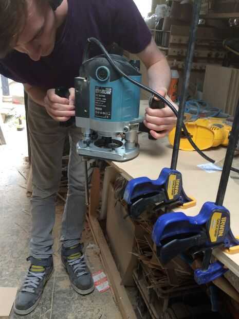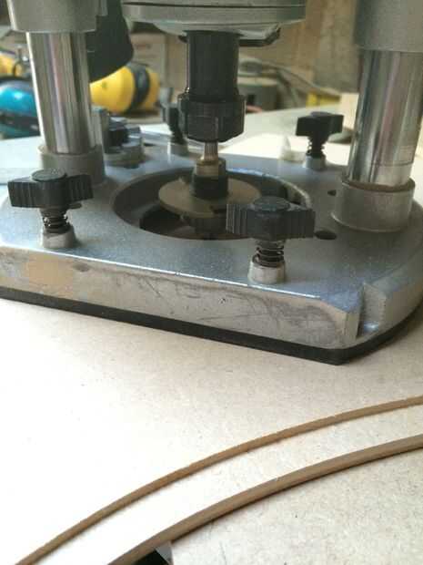 A continuación, configurar el router a una profundidad de 3mm y cortar un reembolso de todo el camino alrededor del borde del panel de 9mm, asegurándose de cortar en el interior del borde en lugar del borde de la cara. Una vez satisfecho con que conseguimos algún pegamento para madera resistente en el ir e intercala las piezas de 9mm y 6mm juntos, garantizando la devolución estaba en el centro para formar el canal de 3mm. Las dos partes celebraron juntos la noche con tantas pinzas como podríamos poner nuestras manos sobre.