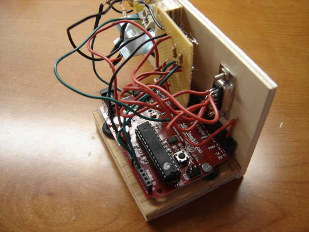 Pegué otro pequeño trozo de madera al mayor para ser utilizado como un lugar para garantizar el Arduino.