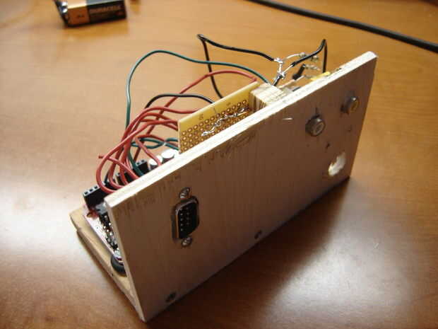 Empecé con un pequeño trozo de madera que corté para caber dentro de la caja. La idea era que asegurar todo a esta pieza y luego fijar la caja a la madera. Los agujeros deben cortarse para adaptarse a los enchufes RCA, el conector de 9 pines, y un cable USB que se necesita para conectar al Arduino.