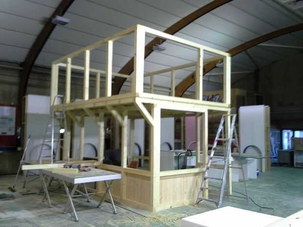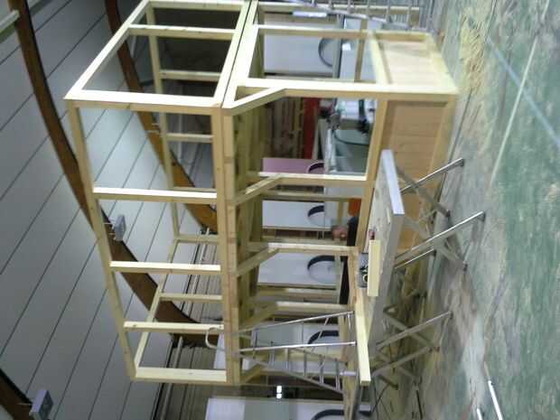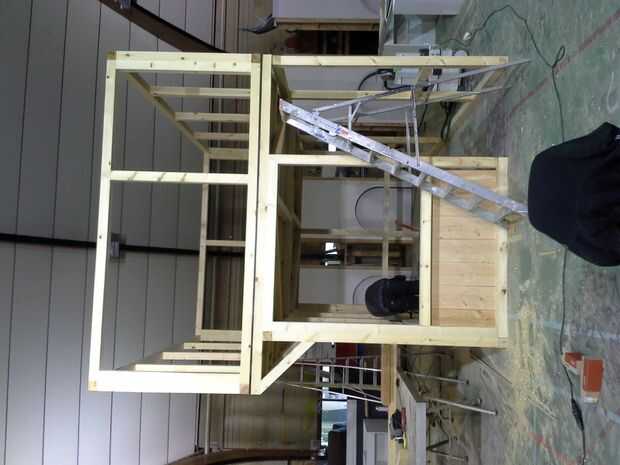 Corte las vigas a medida y construcción de 4 piezas separadas. tirando hacia arriba de los 4 pedazos separados uno en un momento y atornillar encima de las vigas transversales de la planta baja.