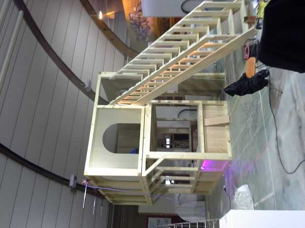 en el primer piso, cerramos los orificios con el mdf y plexiglás. cortar el mdf primero y atornillar la a las vigas. después se atornilla el mdf nos orificios pre taladrado en el plexi de cristal y atornillado para el mdf.