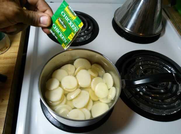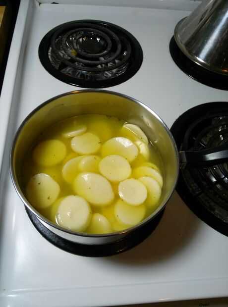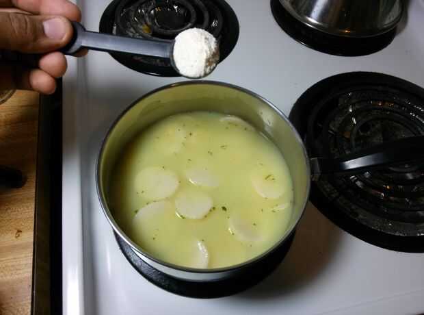 Deje que todo hierva a fuego lento para un hechizo hasta que las patatas comiencen a caer aparte alrededor de los bordes y Volià! Listo! Dejar enfriar a la temperatura deseada y disfrutar. Compruebe el siguiente paso para formas de gussy up un scosh.