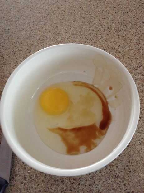 Batir juntos el huevo y la vainilla en un recipiente separado.