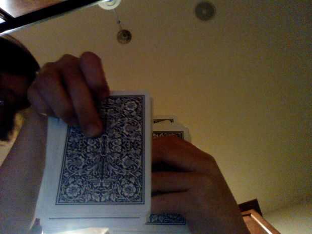 este truco fue hecho originalmente por David Blaine. Requiere una tarjeta duplicada - que significa la cubierta no puede ser examinada después - pero deja al espectador sin palabras. Este truco se puede hacer con un espectador, o con ligera modificac