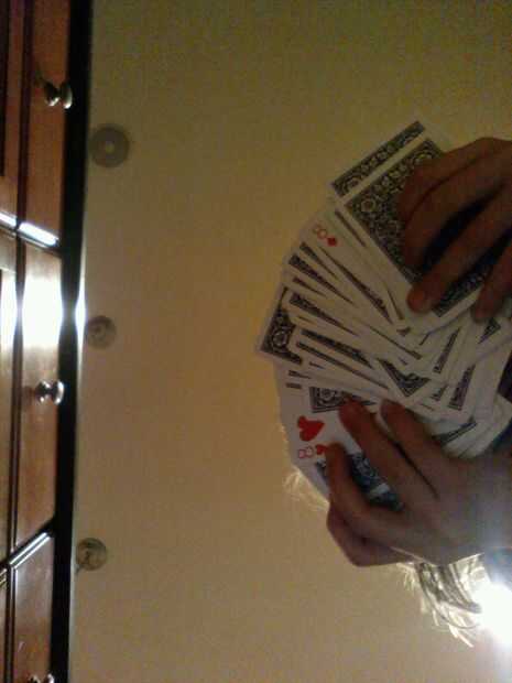 este truco fue hecho originalmente por David Blaine. Requiere una tarjeta duplicada - que significa la cubierta no puede ser examinada después - pero deja al espectador sin palabras. Este truco se puede hacer con un espectador, o con ligera modificac