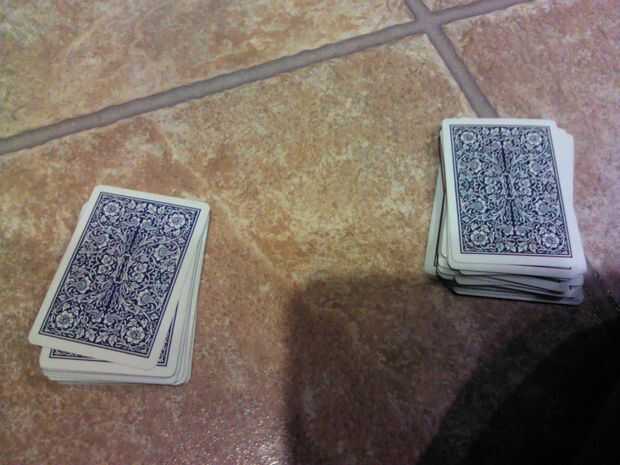 Entonces comenzar desde la parte superior y hacer dos montones hasta que la pila se ha ido