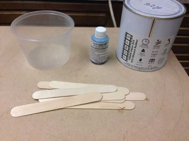 RTV de silicona y catalizador, esto viene en una variedad de hardnesses y velocidades de trabajo, me gusta usar una versión más lenta de la velocidad de trabajo, me da un tiempo de vida útil de 40 minutos para trabajar con él. Su mejor uso una silicona más lento si tu no acostumbrado.