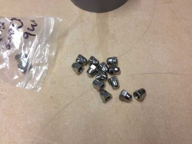 Tuercas bellota o algo con un extremo redondo.