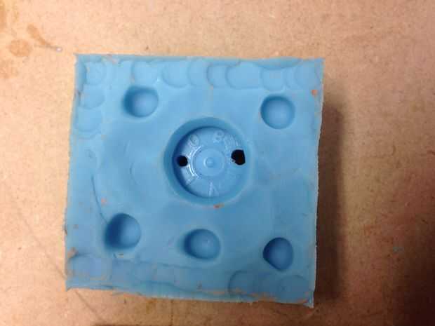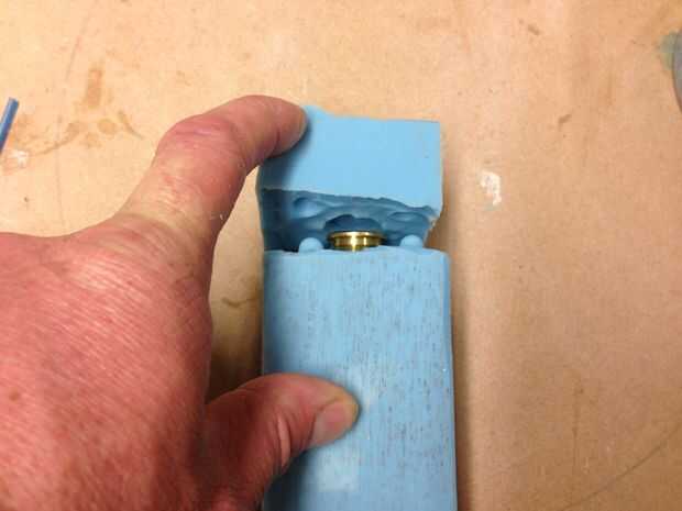 para utilizar el molde cinta sólo firmemente las 2 mitades juntas y rellenar con el soporte de fundición.