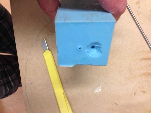 usando un cuchillo agudo de la manía corté un embudo en uno de los agujeros donde estaban las barras.