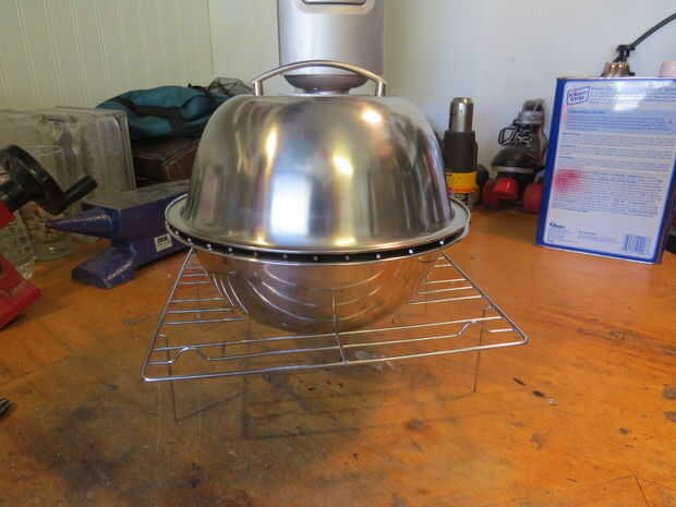 Para hacer un stand me asumió parte de la pantalla interior de corte a la izquierda y cuatro de los alambres doblados a 90 grados. Por ello un bonito pedestal pequeño para la parrilla. Ahora es el momento para disparar hacia arriba.