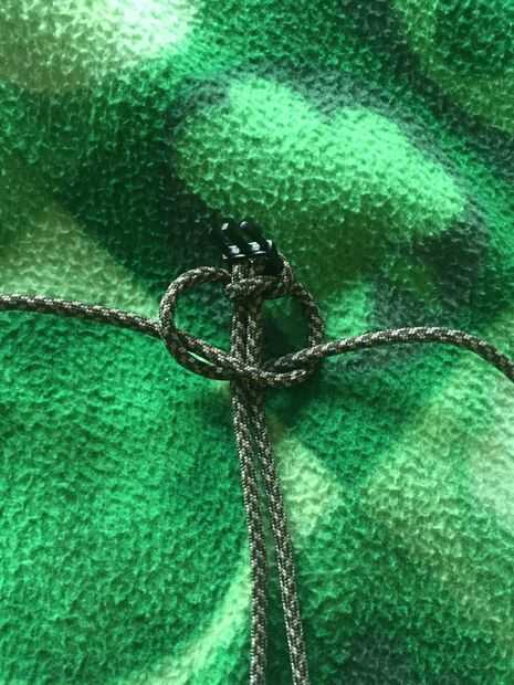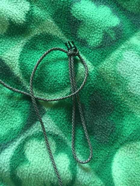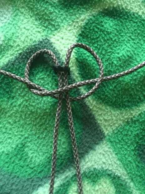 Tomar cadena 2 y poner sobre la base. Tomar la cadena 1 y póngala sobre cadena 2, debajo de la base y a través del lazo de lado de mano izquierda. Y apriete.