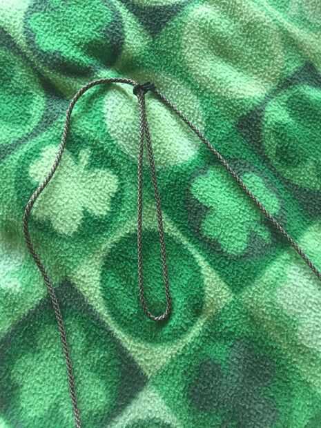 Tomar la cadena 1 y póngala sobre la base. Y cadena 2 por cadena 1, debajo de la base y a través del lazo en el lado izquierdo.