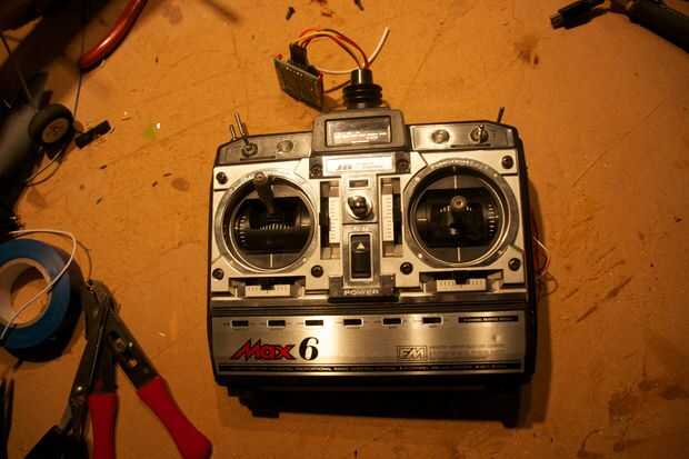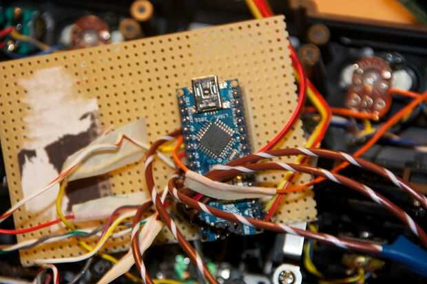 He comprado a un viejo, 35MHz transmiiter con no cystals y no receptor de eBay por £16. Luego lo abrió y quitar la Junta vieja del transmisor. Entonces alambré el potenciómetro para cada control a 5V y GND, la conexión del pasado; centro uno, fue conectado al pin analógico es en el arduino. Si desea incorporar más potenetiometers de 8 entonces deberás usar un arduino más grande o una viruta del multiplexor, que puede confundirse.