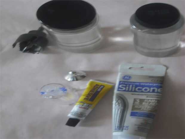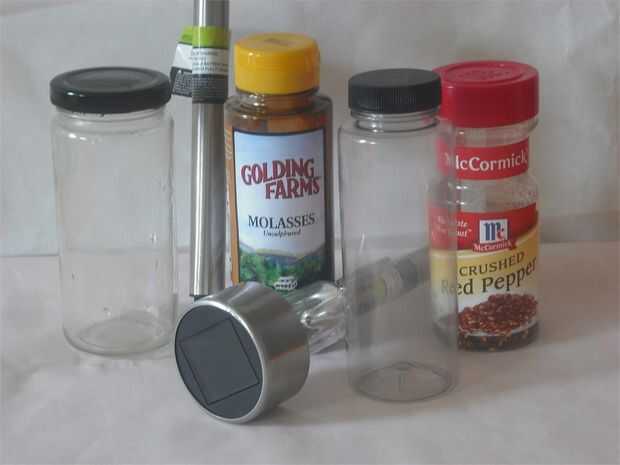Después de probar la botella grande. Cambié a recipiente pequeño. 1 1/4 de apertura es ideal para la base. Artículos que aparecen son algunos ejemplos. Usé un tarro de cristal para el LED ultravioleta. Con algunas modificaciones.