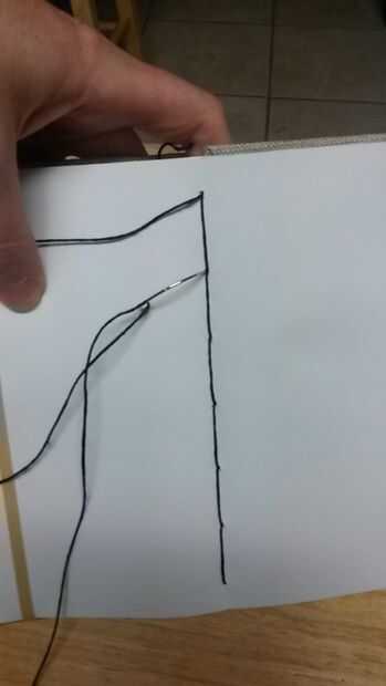 Pase la aguja bajo el hilo entre la última firma y la cubierta trasera en la dirección opuesta, que usted se está moviendo. El hilo debe bucle completamente todo. Si no es así, pase la aguja bajo otra vez.