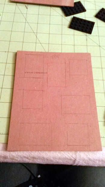 Seguimiento de la configuración de la capa inferior de LEGO en una sola pieza de la Junta de libro. No olvides tu media pulgada en el lado izquierdo.