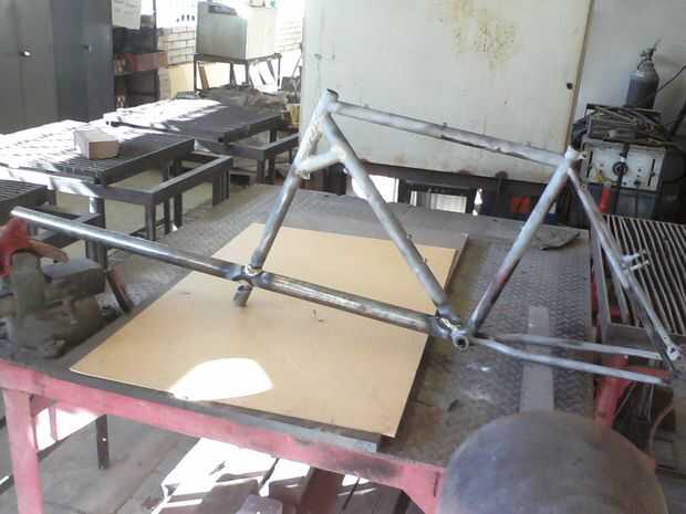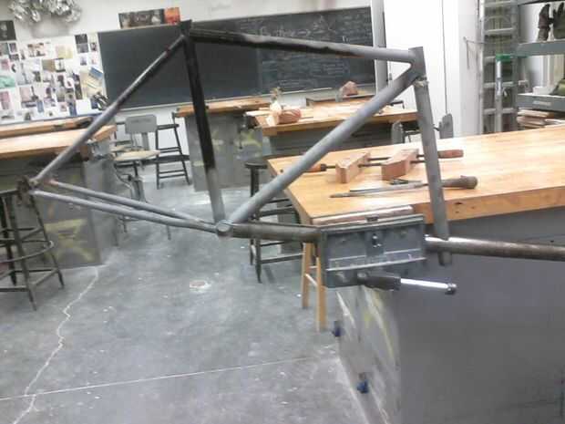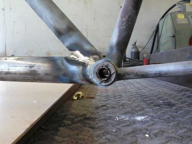 A continuación utilicé algunas finas paredes 1 3/4" tubo de acero de diámetro para la extensión del marco principal de la parte delantera. Pensé que sería agradable y dura ya que había visto un montón de variaciones donde personas intentaron Ingeniero tubos múltiples juntos para agregar rigidez. Esto funcionó muy bien. Esto también permitió suficiente espacio así que podía mantener toda la longitud de 1 pieza de acero en lugar de 2 piezas separadas.