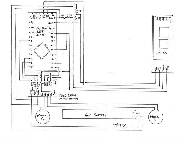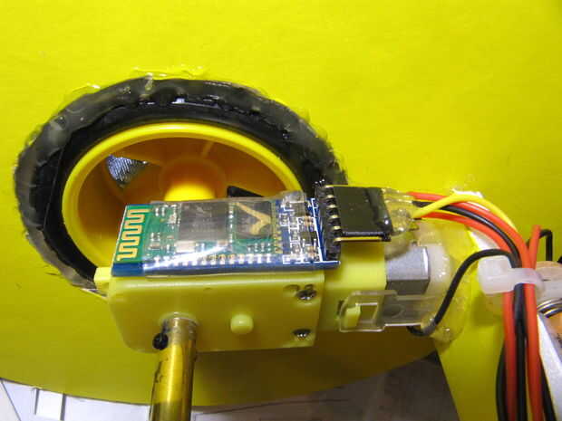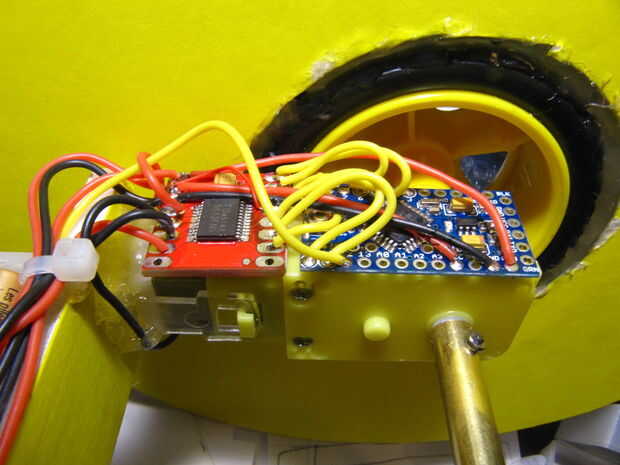 Opté por usar el Mini Pro y el conductor del motor de TB6612 debido al tamaño mucho más pequeño comparado con un Arduino Uno y un escudo del motor. Los tableros más pequeños puede caliente pegado al motor para una instalación limpia. Soldar un encabezado hembra de 6 pines para el Mini Pro para hacer una conexión segura con las clavijas del adaptador FTDI para la programación, y también permite una conexión en serie extraíble (sólo cables TX y RX) desde el módulo Bluetooth HC-05. El módulo de Bluetooth lo contrario interferiría con la descarga del programa FTDI, así que el encabezado / conector asegura que no hay un conflicto. Otra forma de evitar un conflicto de Bluetooth sería utilizar software serial para el Bluetooth, pero software interrupciones serie se arruinara la función millis() utilizada en el programa.