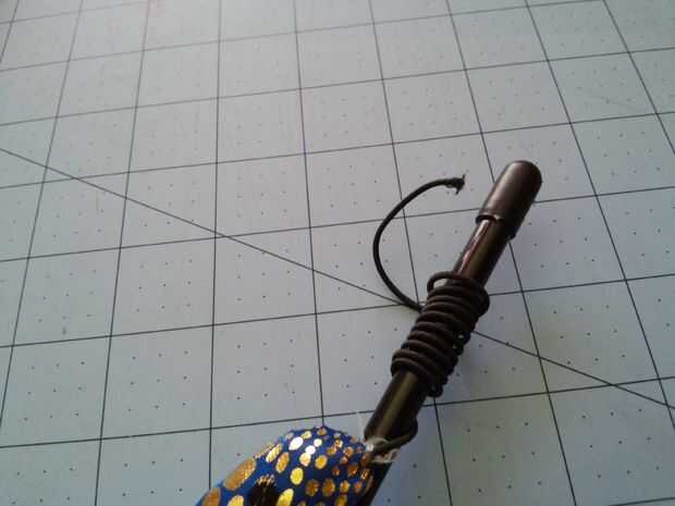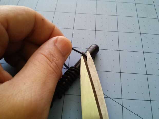 Utilizando la tijera, cortar el extremo del elástico de la varilla de juego cat. Ponga a un lado.