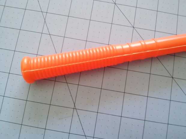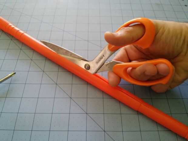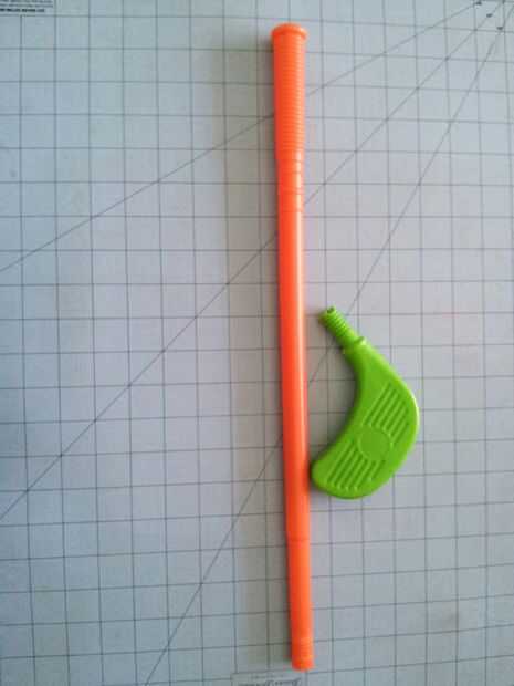 Separar el eje de la cabeza del club de golf de juguete. Con la tijera, corte una línea a lo largo del eje. El eje si tiene una costura visible desde donde fue moldeada, usar esto como una guía para crear un corte recto. Ponga a un lado.