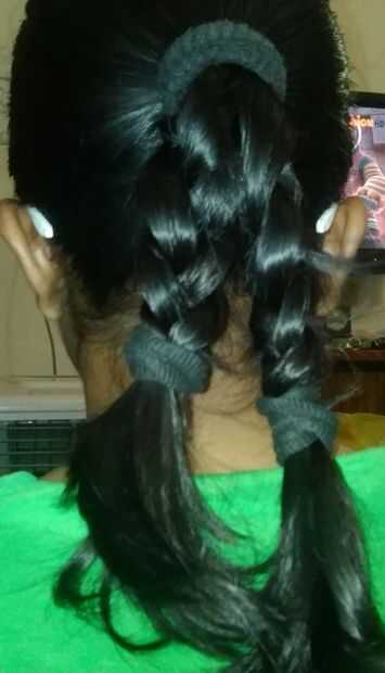 Hacer 2 particiones para 2 trenzas y hacer 2 trenzas. Completa