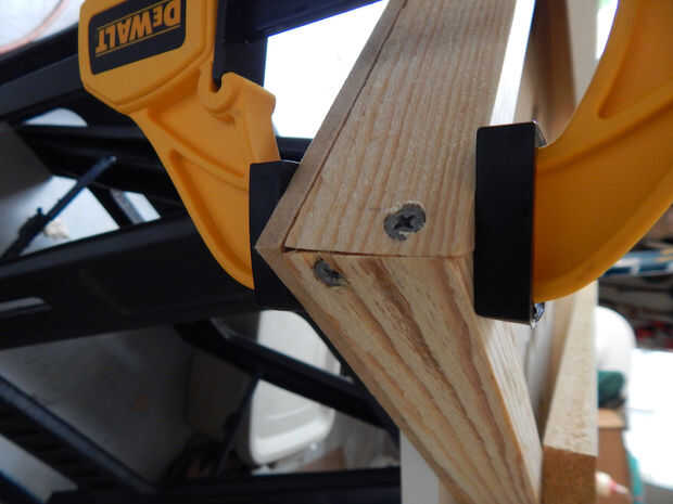 • Tornillo y la madera unir las secciones. Utilicé una pinza en ángulo de 90 grados para unir las piezas perforar los agujeros para los tornillos y las secciones atornilladas.
